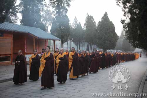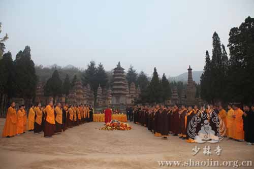 2014年4月1日(农历三月初二)清晨,时值清明节前夕,少林寺方丈释永信率两序大众齐聚塔林,按照千余年沿袭的传统方式,祭祀了历代祖师。四众弟子随喜参加。