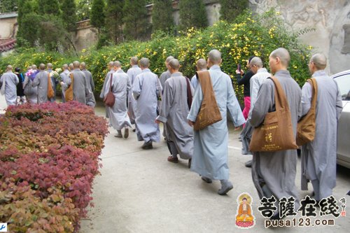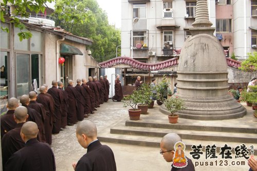 7时许,莲溪寺方丈、武昌佛学院教务长印宗法师带领学僧与居士从莲溪寺出发,行脚至千家街七一九研究所内的太虚大师舍利塔,此塔毗邻太虚大师闭关之时居住的潮音茅蓬,朴素、洁净,却庄严、寂静。