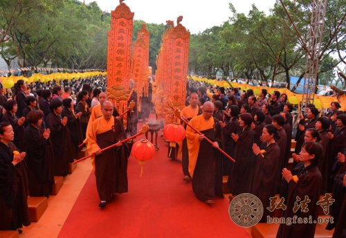 2014年4月2日下午3点,为纪念本焕长老圆寂两周年,弘法寺2014年清明思亲报恩水陆超度祈福大法会在弘法寺斋菜馆前广场盛大开坛。法会规模庞大、气势恢宏,来自全国各地法师与善信近五千人前来参加法会,表达对往生先人的孝思,亦为在世亲友祈福。