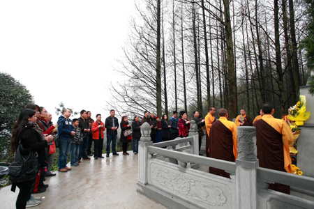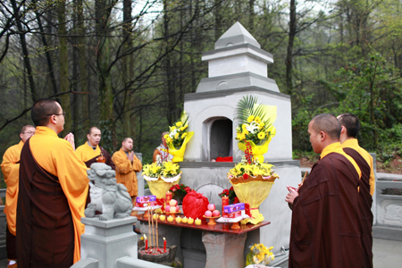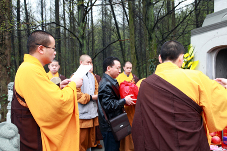 2014年4月5日10点30分,入塔仪式开始。天国寺住持宏开法师主持仪式,文殊院和天国寺的僧众为宏达法师送塔,宏达法师亲友及善众参加仪式。法器韵起,梵唱声声,追思宏达法师生前功绩,庄严肃穆。宏达法师灵骨入塔仪式圆满殊胜。