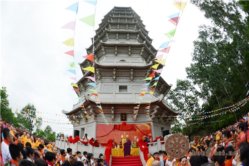 深圳市委常委、统战部部长张思平,市民宗局局长姚任,福田区委常委、统战部部长李生伟,南山区委常委、统战部部长郭钢,福田区政府副区长黄漫娥,福田区委统战部副部长、民宗局局长许岚,罗湖区委统战部副部长、民宗局局长李立笔等有关领导,中国佛教协会副会长、深圳市佛协会长、深圳弘法寺方丈、深圳佛教文化院院长印顺大和尚与弘法寺主法法师及福塔功德主和居士信众近千人参与活动,共同见证这一佛教盛事。