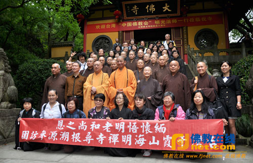 据悉,在悟明长老(台湾中国佛教会前理事长)圆寂三周年之际,为缅怀长老,明光法师特率团赴祖国大陆参访,拜会武汉归元寺、嵩山少林寺、镇江金山寺、上海留云禅寺、杭州灵隐寺、新昌大佛寺、奉化雪窦寺等21座相关寺院,历时12天。通过踏循悟明长老前半生足迹,追溯中华佛教文化,增进两岸佛教交流。