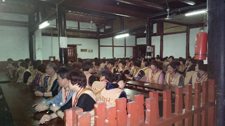 2014年4月20日下午,身着“同愿同行”的统一队服,由浙江绍兴会稽山龙华寺住持了静法师带领着佛学班的135人组成的朝圣团,赴四川成都文殊院朝圣参访。