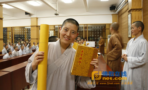 获奖学僧欢喜展示奖品
