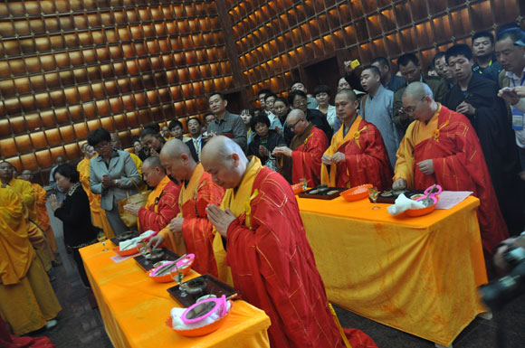 出席庆典的佛教界高僧大德及佛教学者有:中国佛教协会副会长、江苏省佛教协会会长、镇江佛教协会会长、焦山定慧寺、金山江天禅寺方丈心澄大和尚,香港佛教联合会执行副会长、香港西方寺方丈宽运法师,中国佛教协会常务理事、江苏省佛协副会长兼秘书长秋爽大和尚,中国佛教协会常务理事、江苏省佛教协会副会长能修大和尚,江苏省佛教协会副会长、南京市佛教协会副会长隆相大和尚,中国佛教协会常务理事、江苏省佛教协会副会长莲花法师,江苏省佛教协会副会长、苏州市佛教协会会长普仁大和尚,中国佛教协会理事、江苏省佛教协会副会长、江苏徐州云龙山兴化寺住持果光大和尚,江苏省佛教协会副会长、南通佛教协会会长俊才大和尚,江苏省佛教协会副会长、盐城市射阳息心寺方丈了尘大和尚,江苏省佛教协会副会长、南京毗卢寺方丈传义大和尚,中国佛教协会理事、江苏省佛教协会副秘书长、江苏省缘源书画院副院长陈建华等以及国内著名佛教学者徐小跃,董群,杨维中,邓子美,徐文明,刘元春等。
