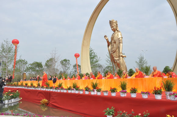 庆典9点正式开始,首先由睢宁县委书记王军致辞。他希望水月禅寺在流云法师的住持下,珍惜良好的政治环境,继承发扬爱国爱教、团结进步、服务社会的优良传统,努力将水月禅寺打造成为睢宁展示文化风采的重要窗口,并热烈祝贺寺院落成暨全堂佛像开光盛典取得圆满成功。水月禅寺住持流云法师致欢迎和答谢辞。