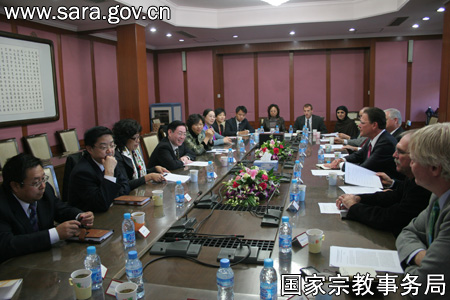 2009年10月19日上午,国家宗教事务局局长王作安会见、宴请了前来访问的美国宗教联合代表团并与其举行座谈。王作安向代表团介绍了国家宗教局的工作职能以及中国的政教关系情况,并表示国家宗教局将一如既往支持中美两国宗教界加强友好交往,坚持不懈促进两国人民之间的了解和友谊。国家宗教事务局各有关部门负责人也出席了座谈。