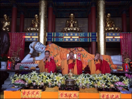 卧佛殿的佛陀塑像,见证此次传戒法会