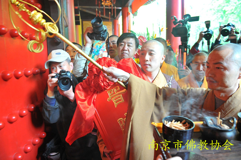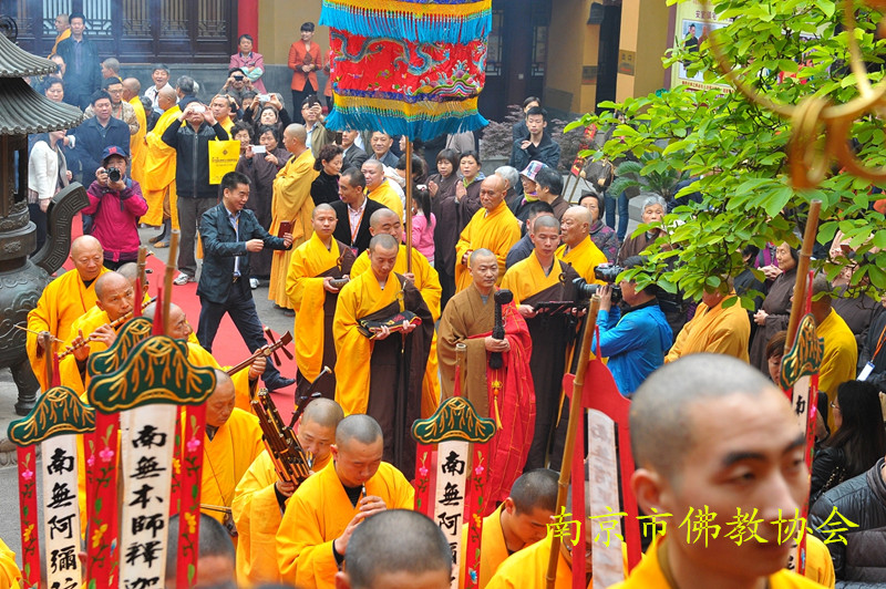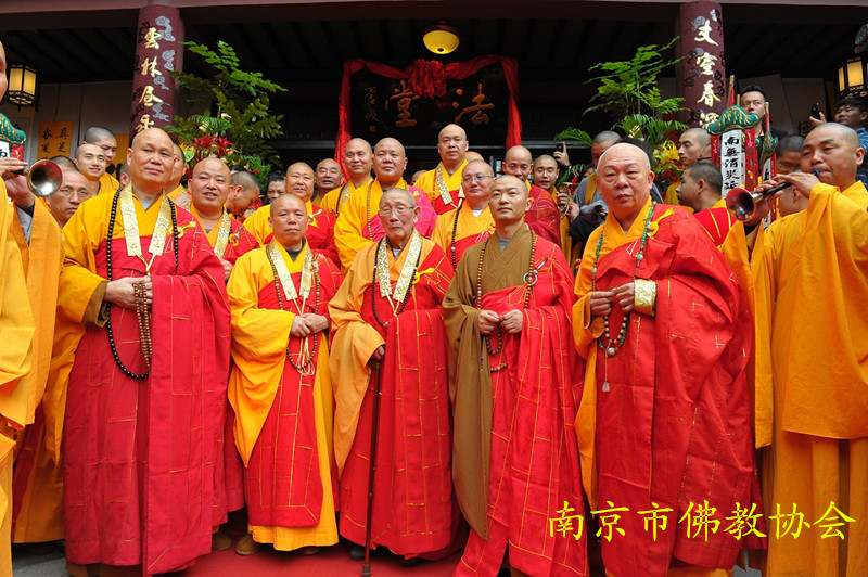 中国佛教协会副会长、江苏省佛教协会会长心澄法师,中国佛教协会副会长、江西省佛教协会会长纯一法师,中国佛教协会宗家顺副秘书长、教务部主任宏度法师,新加坡佛教会副会长法喜法师、江苏省佛协副会长兼秘书长、苏州寒山寺住持秋爽法师、北京市佛协副会长、广化寺住持怡学法师、山西省佛协副会长、五台山黛螺顶住持昌善法师、江苏省佛协副会长、扬州大明寺住持能修法师、江苏省佛协副会长、南京市佛教协会会长、栖霞寺住持、隆相法师,江苏省佛协副会长、南京鸡鸣寺住持莲华法师、江苏省佛协副会长、苏州西园寺住持普仁法师,江苏省佛协副会长、徐州兴化寺住持果光法师,中国佛教协会副秘书长、江苏省佛协副会长吴国平居士,江苏省佛协副会长、南通广教寺住持俊才法师,江苏省佛协副会长、连云港海宁寺住持昌鉴法师,江苏省佛协副会长、盐城息心寺住持了尘法师,江苏省佛协副会长、淮安能仁寺住持曙正法师,江苏省佛协副会长、南京毗卢寺住持传义法师,兰州市佛协会长、浚源寺住持理因法师,滁州市佛协会长、琅琊寺住持顶光法师以及江苏省、南京市各寺院法师、居士数千人参加庆典。