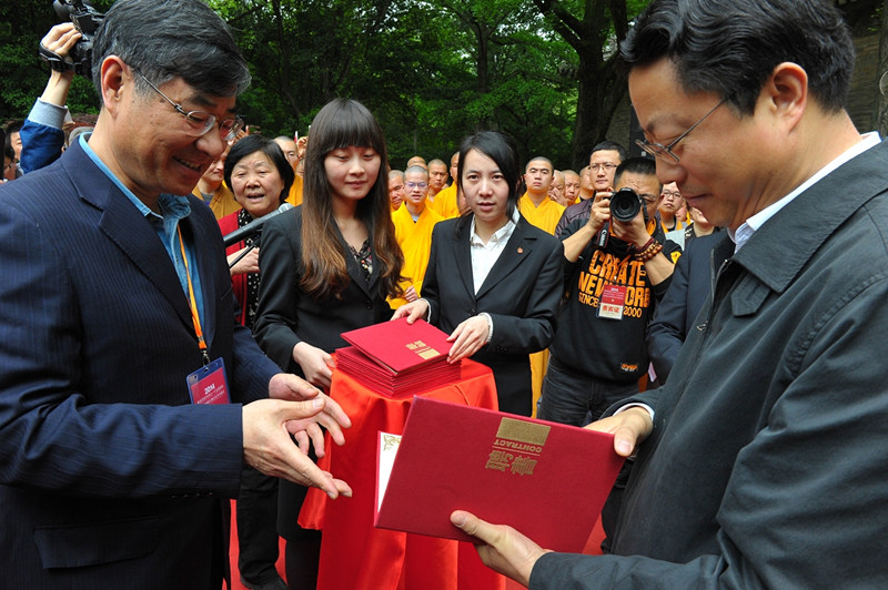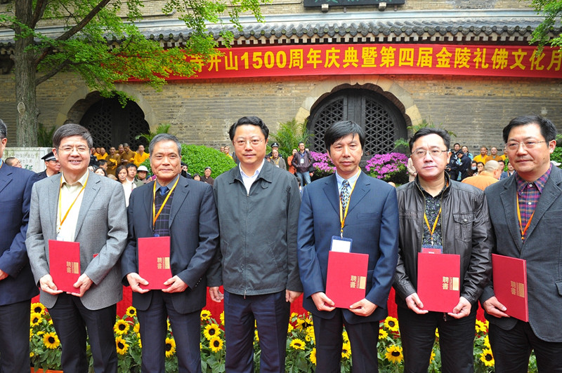 为进一步贯彻落实习近平总书记关于传承和弘扬中华传统文化重要指示精神,推动南京佛教文化创新发展,庆典当日,南京还成立了“南京佛教文化研究中心”,并得到了国家宗教事务局和省、市各级领导的高度重视和社会各界的大力支持。成立当天,国家宗教事务局副局长蒋坚永、江苏省政协主席张连珍、江苏省委常委、南京市委书记杨卫泽、江苏省宗教事务局局长莫宗通共同为“南京佛教文化研究中心”揭牌,杨卫泽现场为该中心首批特聘专家:南京大学中华文化研究院院长、南京大学教授、博士生导师赖永海,南京图书馆馆长、南京大学教授、博士生导师徐小跃,以及洪修平、王月清、董群等9位国内知名佛教文化研究学者颁发了聘书!