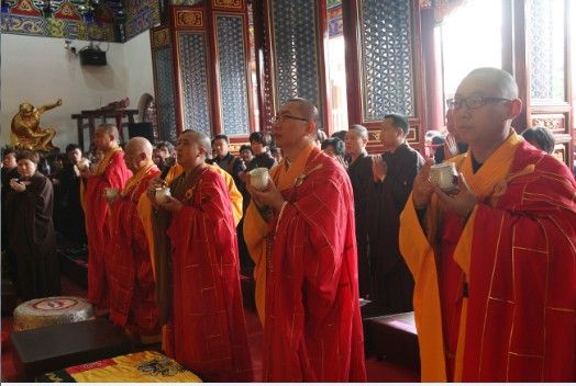开光法会由智明法师,俊生长老,惟学法师,光生法师,明慧法师共同主法。开光仪式上,高僧共同诵经祈福,主法法师拈香、说法,洒净,开光仪轨依次分“用巾拂尘”、“举镜照空”、“朱笔点眼”三个步骤,喻以佛法拂去众生心地上的垢尘,开发其内在智慧,进而遵从佛教道理,化世导俗,去除烦恼,建设和谐。法会如法如仪,庄严肃穆,檀越信众随喜敬香,皆大欢喜。