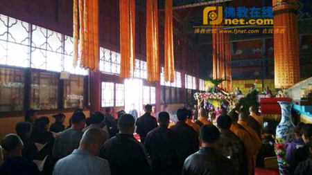 当天,华岩寺方丈道坚法师率众弟子迎接太子,队伍庄严。道坚法师并在会上作慈悲开示。