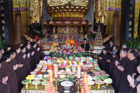 2014年5月6日佛光普照,甲午年(佛历二五五八年)四月初八是为庆祝释迦世尊降生诞辰纪念,安徽池州乔觉禅林寺于上午举行浴佛法会,住持宏云法师领众浴佛、共沐佛光、同沾法喜,藉此报答三宝恩、父母恩与众生恩,并祈求祖国繁荣富强,社会和谐。