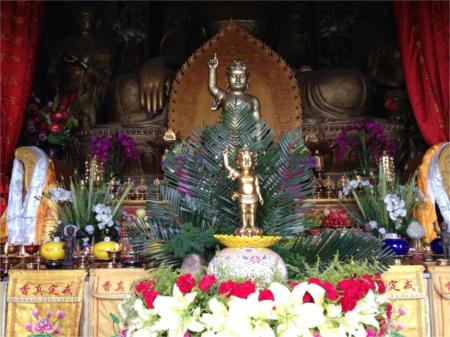 2014年5月6日,甲午年四月初八是释迦牟尼佛的诞生日。今天,为缅怀佛陀的恩德,浴佛法会的感应寺到处是鲜花彩旗。上午九点,浴佛法会正式开始,法会由智慧法师主法。