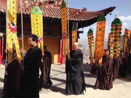 华岩寺方丈道坚法师率众弟子迎接太子像