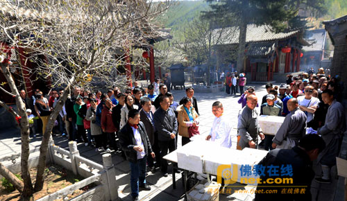 据了解,当天,黛螺顶、显通寺等寺院还分别举行了千僧普佛大法会,来自全山汉藏寺院两千余僧人一起诵经祈福,以庆贺佛陀圣诞。为了能够让更多的人感受佛陀的伟大慈悲和利益众生,黛螺顶还特别进行了施斋饭活动,向海内外的居士、信众及游客香客派发了寺院的斋饭。
