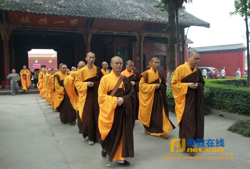空林佛学院僧众进入昭觉寺大殿参加千僧斋祈福法会