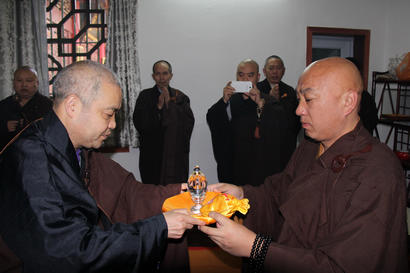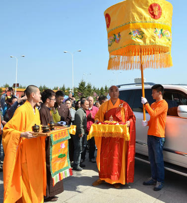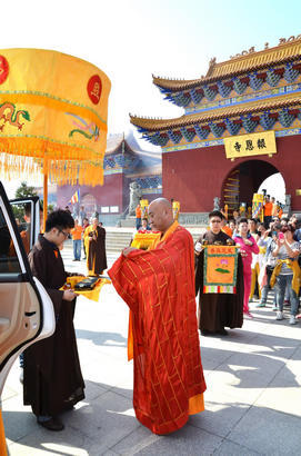 黑龙江海林报住持道性法师到重庆涂山寺迎请(图片来源:凤凰网华人佛教)
