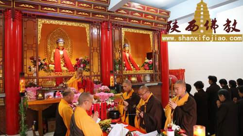 2014年5月9日,为强化四众弟子自身修养,提高居士的正知正见、修学层次,加强教风建设,促进社会和谐发展,周至涌泉寺隆重举办居士五戒菩萨戒传戒法会。涌泉寺礼请了长安护国道安寺住持宽严法师为得戒和尚。来自北京、新疆、西安等地的受戒佛子四十余人,戒子们为受持净戒精心准备,认真听闻教授、至诚忏摩回向,常住护法尽心尽力,传戒仪式如法如律,隆重庄严,吉祥圆满。