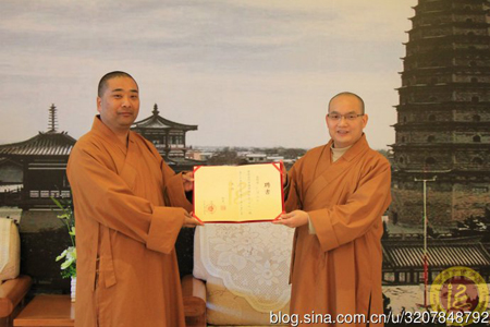 常务副院长贤空法师代表院长学诚法师向法师们颁发了聘书。聘书颁发仪式结束后,新聘各位领导分别发言。最后,参加会议的全体人员在学院门前合影留念,记录下了这个庄严肃穆并充满期待的时刻。