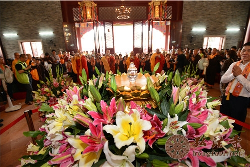 上午10点,顺德觉妙净院举行了恭迎本焕长老舍利供奉暨祈福法会。法会上,僧众诵经祈福,现场大众虔诚瞻礼祈愿,无不法喜充满。见舍利如见本老,在庄严的佛号声中,本老仿佛乘愿再来,普度含灵,慈悲加持,让大众想起他“不为自己求安乐,但愿众生得离苦”的济世情怀。整个法会庄严肃穆,殊胜圆满。