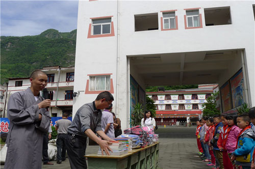 2014年5月20日,成都文殊院为汶川县三江小学捐赠400套校服,提前给孩子们送上儿童节的祝福。此次捐赠活动是由文殊院人间佛教志工团发起,志工团福智组策划组织,筹集善款近3万元,为该小学学前儿童及在读小学生每人订做夏季校服和运动服各一套。