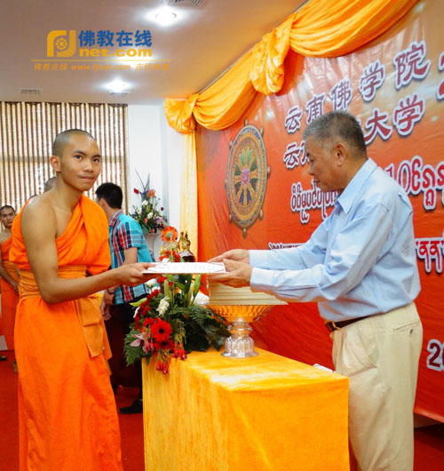 云南民族大学副校长和少英为云南佛学院2010级南传班学僧颁发云南民族大学大专毕业证书