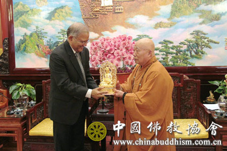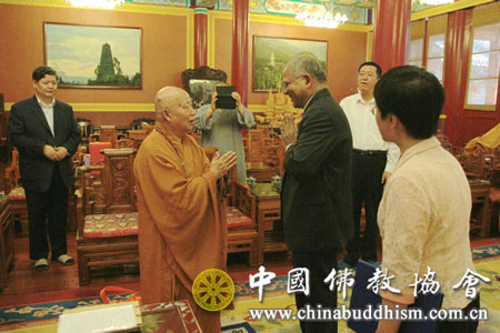 2014年5月26日上午,印度驻华大使馆新任大使康特先生一行3人到北京广济寺拜访中国佛教协会,受到中国佛教协会会长传印长老、秘书长王健先生的热情接待。