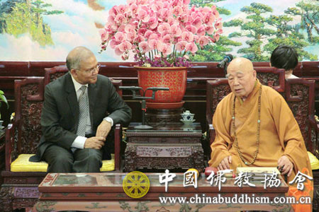 中国佛教协会副秘书长张琳,副秘书长兼北京广济寺方丈演觉法师,国际部主任普正法师,教务部主任宏度法师等陪同会见。