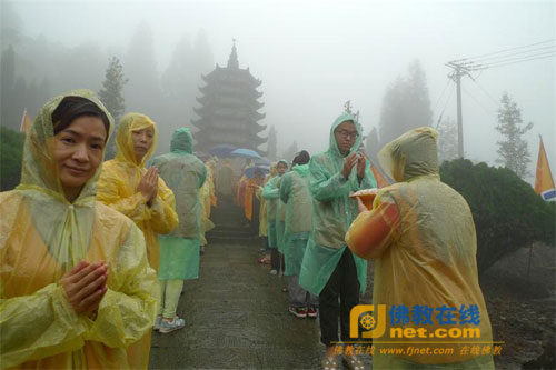 纪念法会当天,天国寺华雨弥天,普降甘霖。来自各地寺院的诸山大德以及诸多信众,冒着大雨,在宽霖老和尚灵塔前举行了隆重的纪念仪式,宗性法师带领大众以虔诚心在老和尚灵塔前礼拜上供,感怀纪念老和尚的丰功伟绩。