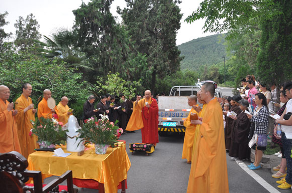 下午3时,在兴化寺南门,果光大和尚带领信众举行了隆重的放生仪式,并祝愿学子考试顺利,吉祥圆满!卡车载着二万余元的鲤鱼前往大龙湖放生,寓鲤鱼跳龙门之意。