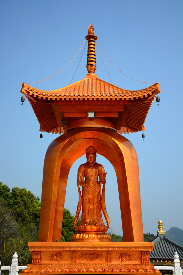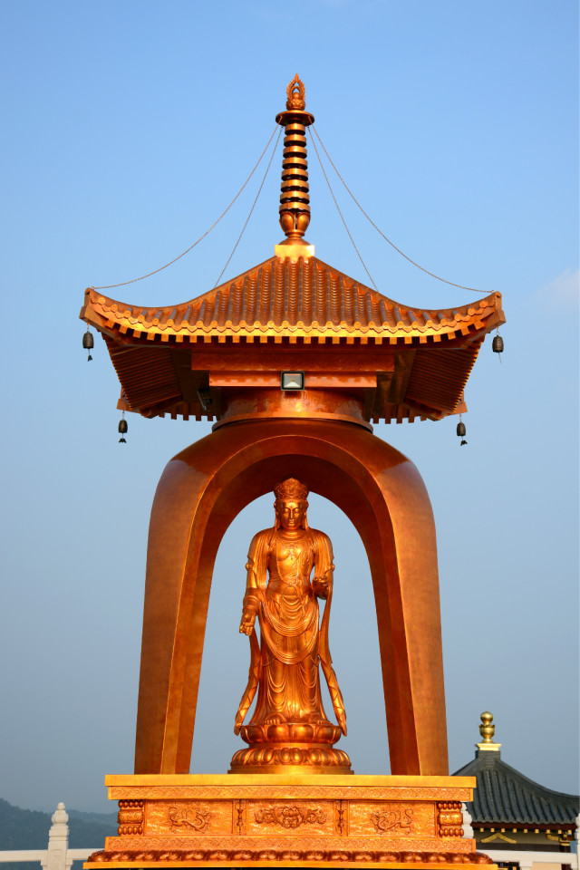东林大佛台四大菩萨像贴金完工