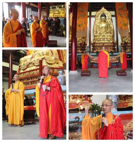 据悉,参加此次法会的四众弟子约500人左右,信众来自北京、上海、深圳等各个城市,还有特意从新加坡赶来参加活动的同修。于今日上午八点半左右,在弥陀寺住持上本下源大和尚主持下,由龙华寺上世下炫大和尚、联合国世界佛教青年僧协会秘书长上无下上大和尚、及盐城佛教协会副会长上慧下德大和尚主法,携领弥陀寺第五届短期出家200左右学员,在泰山寺大雄宝殿举行盛大托钵仪式。