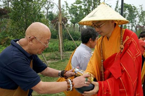 托钵活动结束后,由上世下炫大和尚主法,带领四众弟子,举行大型放生仪式。