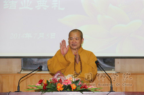 2014年7月5日下午,中国佛学院第二期“法海探源”中级班结业典礼及汇报演出在中国佛学院礼堂举行。中国佛学院副教务长广如法师、培训部主任容通法师、副主任法广法师以及教务处海轮法师、传静法师共同出席了结业典礼。结业典礼由容通法师主持。