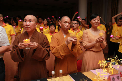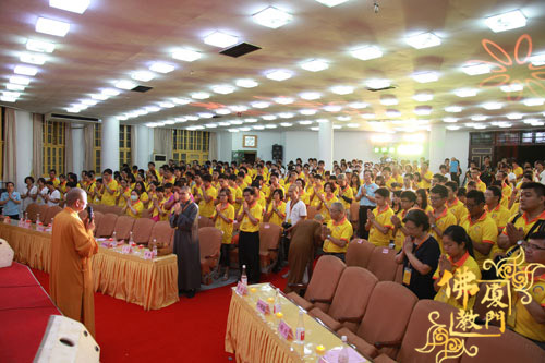 明光大和尚以释迦牟尼佛、玄奘大师为利益众生青年入道为例鼓励青年们要有不达目的绝不终止,这种马直地的精神。台湾新北市佛教会理事长明空法师,台湾童军会代表郭廷铭,厦门市青年联合会主席分别先后致辞。