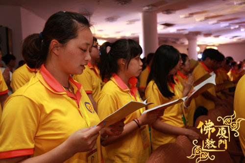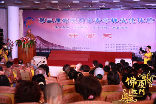 17日晚上19点,第三届海峡两岸青年禅文化体验营在南普陀寺讲堂隆重开营。开营式由南普陀寺知客悟云法师主持。两岸青年共同营主任则悟大和尚、明光大和尚分别致辞鼓励青年营员。则悟大和尚说“两岸青年共同聚集在美丽的鹭岛厦门,为期一周的学习、体验、交友、品验人生,相互学习,彼此结缘,学习各自的优点,使我们自己成为一位德才兼备、有素质的青年,为我们两岸共同的家园,携手努力,贡献我们新生的力量,让更多人感受到中国传统的美德,感恩、包容、欢喜”。