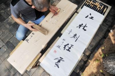 站在这所小庭院中,隔墙就能看到巍峨的藏经楼,一块“江北刻经处”的木牌正在进行最后的打磨。“江北刻经处”曾经在雕版史上赫赫有名,影响并不逊于金陵刻经处。