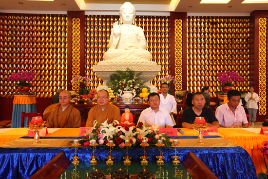 2014年7月20日上午9时整,开营仪式在庄严的三宝歌声中拉开帷幕,秦皇岛市民宗局副局长蒋世超、科长高顺宏,昌黎县民宗办主任王晓东等领导,河北省佛协副会长、秦皇岛市佛协会长、水岩寺住持存海法师,内蒙古包头清净寺住持法隆法师等法师以及全体营员、志愿者共300多人共同出席了开营仪式。
