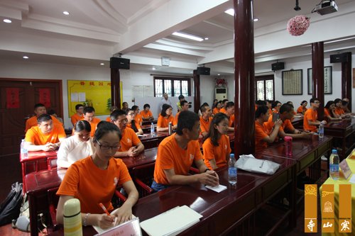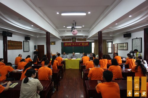 2014年7月26日上午9时,苏州寒山寺2014“和合人生”禅修夏令营圆满闭营。中国佛教协会常务理事、江苏省佛协副会长兼秘书长、寒山寺、重元寺方丈秋爽大和尚率领寒山寺法师,以及来自全国各地的在家佛教徒、在校大学生、佛学爱好者共40人名营员参加本次闭营仪式。