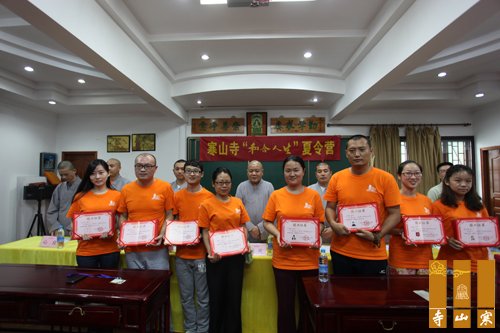 随后,秋爽大和尚及寒山寺法师为本届夏令营营员颁发结业证书,同时大和尚宣布本届寒山寺2014“和合人生”禅修夏令营圆满闭营。