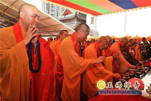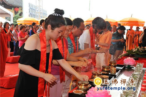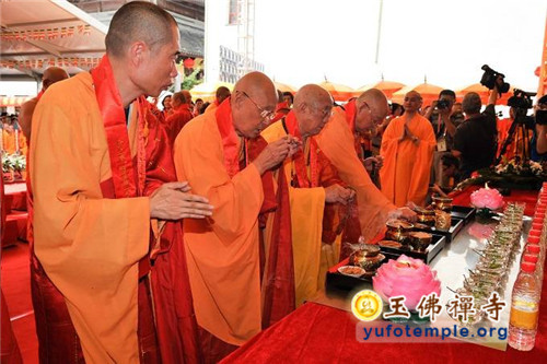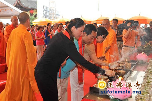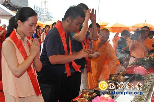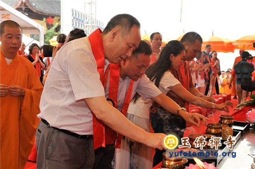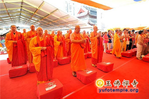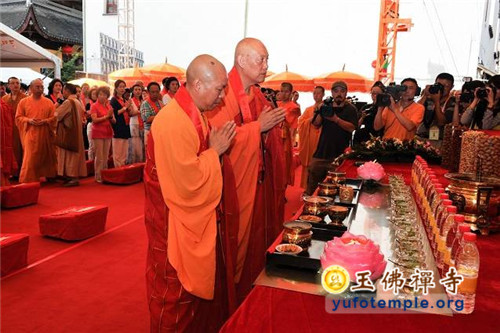 2014年7月31日上午,上海玉佛禅寺内人声鼎沸,热闹非凡。“百年古刹,再启新篇——上海玉佛禅寺消除公共安全隐患保护性修缮工程开工典礼暨祈福大法会”在玉佛禅寺内举行。来自各级政府的领导、全国各地诸山长老代表和寺院的护法居士、社会各界代表约一万余人参加了今天的开工典礼和祈福法会。今天的活动分两部分举行,首先举行洒净祈福法会,随后举行工程开工典礼。