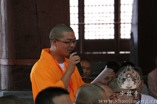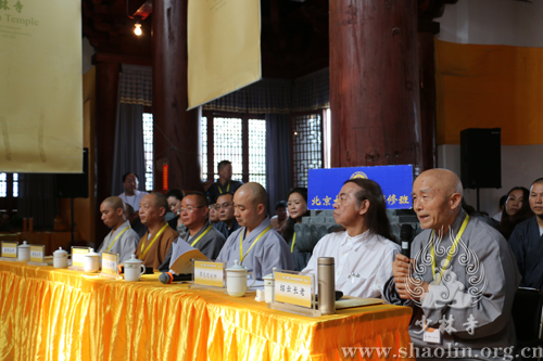 永信方丈开示道:“这次的少林问禅活动很圆满,我们也很高兴。少林寺不断通过举办这样一些活动,就是要与社会互动,扩大禅法的影响力。问禅这几天有不少法师和信徒问我一些辩题,我鼓励他们到现场去学、去参。到现场能听懂一句两句,就能终生受益。我说,我供养大家一个字,“装”字。人要衣装,佛要金装。装是一个大学问,文化就是从外向里、借假修真。人的一生,只要会装,能装上几年、几十年、一百年,能装得表里如一、如如不动,也就成就了。修行是这样,为人处事也是这样。古今中外,那些成功人士哪个不是装出来的呢?只要能装得好,装得像,就能有大成绩,大成就。这也是一种智慧,‘装’的智慧。其实,我们修行的过程也是‘装’的过程,能装上几十年,一定能有所成就,有所受益。少林文化主要有禅武医艺四个方面,少林寺将会在这四个方面举办更多的活动,与大家互动交流,让大家受益。少林寺也一直在这几个方面努力,比如禅方面,我们目前有四个途径来弘扬和发展,一是少林寺禅堂,每年冬季举办‘禅七法会’,为全国各地的禅和子提供修行的道场;二是少林寺都市禅堂,为城市的民众提供修行参悟的场所;三是禅修营,为短期禅修体验的人们提供一日禅修、三日禅修、七日禅修等方便法门;四是我们自2006年开始举办的少林问禅活动,为全国各地的佛子们提供学修的平台。少林问禅属于般若智慧竞赛,将来在适当的时候,我们还要举行体能竞赛,将面向世界,在少林寺举办一个世界武林大会,到时会有很多武术高手和禅修高手莅临,包括等不同的武林门派,都在一起相互切磋交流。内容上,包括套路(拳法,兵器,单练,对练,集体)、功法(各种绝技,比如少林七十二绝技)、散手(空手道、跆拳道、泰拳、西洋拳、散打);还有武学论坛等。少林寺希望通过各种各样的活动,与大家结缘,扩大佛教的影响,提高少林文化的知名度。机锋辨禅一年比一年精彩,明年的十周年活动,我们会邀请一些资深的出家众、在家众参与,看看以什么样的形式进行,是沿袭现在的机锋辨禅形式,还是一对一的交流,我们再探讨。到时候,不少机锋能成为公案,能够让后学受益、受用。我们会坚持开放的心态,为大家提供修学的平台,助力于大家学修并重,精进修行。”