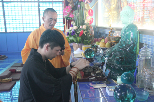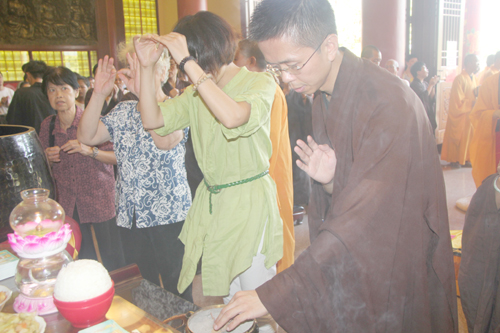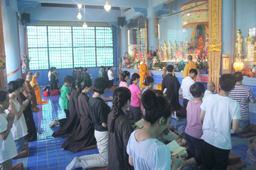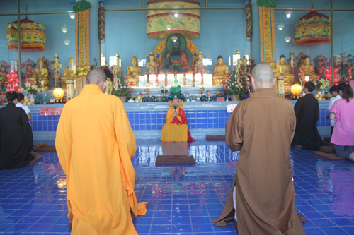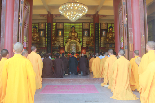 2014年8月24日上午10时,时值地藏王菩萨圣诞日,同时也是本寺举行地藏菩萨昼夜精进七圆满日。上午10时,礼请石室禅院住持忠明法师主法,并先后率众至琉璃宝塔和地藏殿内敬香上供。随后,下午13时在药师密坛内举行皈依仪式。
