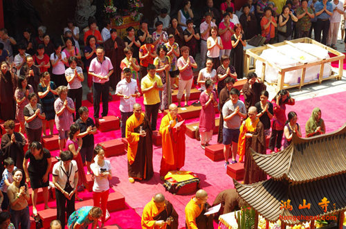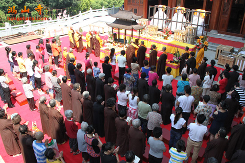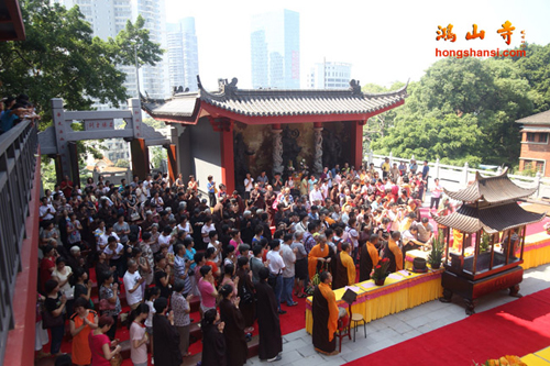 鸿山寺改建工程自2008年奠基,历时6年,现已全面竣工,正式投入使用。今天寺院为佛菩萨圣像举行了庄严而隆重的装藏仪式,各个殿堂的佛菩萨圣像全面安奉到位。寺院将在农历八月初八至八月十五举行万佛普利法会,届时各个殿堂将对信众和游客全面开放。