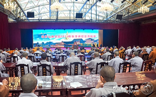 秋高气爽,丹桂飘香。为深化中佛协讲经交流、培养讲经人才的主题,丰富学僧的课余文化生活,促进学僧的语言表达能力,给学僧一个展现自我,锻炼的机会和平台,2014年9月6日上午,峨眉山佛学院在峨眉讲堂举办了“2014年秋季讲经交流比赛”。此次讲经比赛的参赛者是来自2012级男众、女众本科班和2014级本科班的心成法师、圣晨法师、继悦法师、印祥法师、圆上法师、智林法师、性源法师、常提法师、仁性法师、智慧法师、宗乘法师、印一法师等12位法师。佛学院副院长兼教务长法源法师,副院长隆藏法师,教务主任永照法师,副教务长演妙法师,宽祥法师担任评委。比赛由教务部秘书德印法师主持,全院师生到场聆听。