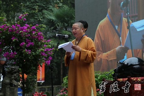 开幕式由允观法师主持,光泉法师和倪忠扬副主任分别代表省佛教协会和省宗教行政管理部门致辞。