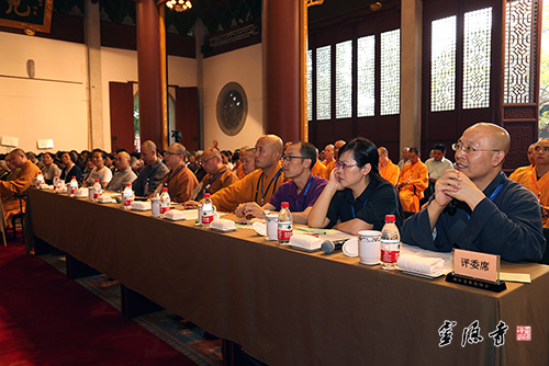 评委们认真听取讲经法师的演讲并进行公正的评判