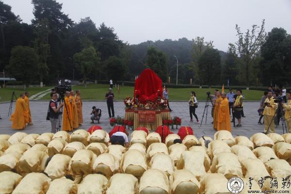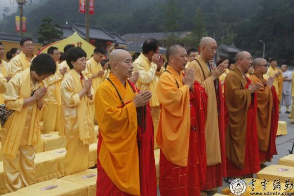 上午九点,浙江省佛教协会会长、宁波雪窦山佛教协会会长、本山方丈怡藏大和尚率两序大众及信众至三门迎接天冠弥勒,在大慈佛国牌楼前的三学桥广场举行了迎请仪式,大和尚拈香、礼拜、宣读迎请文疏后,庄严的仪仗迎请队伍有序地来到了大慈摩尼宝殿。随后,怡藏大和尚、净仁法师、隆悟法师、广能法师、明悟法师为其开光并举行了上供法会。炉香炸热,法界蒙薰……梵音萦绕在整个雪窦山,佛音慈光荡涤着众人的心灵,全山僧众、居士在弥勒慈光普照中,充满了无可言语能表达的欢喜与感恩,整个法会历经两个小时,最后法会回向祈愿中圆满结束。法会祈愿:世界和平、国泰民安、佛日增辉、法轮常转。
