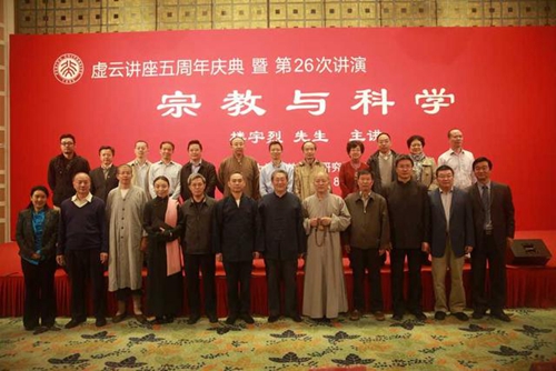 2014年10月8日,北京大学宗教文化研究院举行设立虚云讲座5周年庆典,北大宗教文化研究院名誉院长、哲学系教授楼宇烈先生主讲第26讲“宗教与科学”。来自北京大学、清华大学、中国人民大学、北京师范大学、中央民族大学、中国社会科学院、河北赵县柏林禅寺等的专家学者及来自北大、社会的听众参加庆典与讲座。